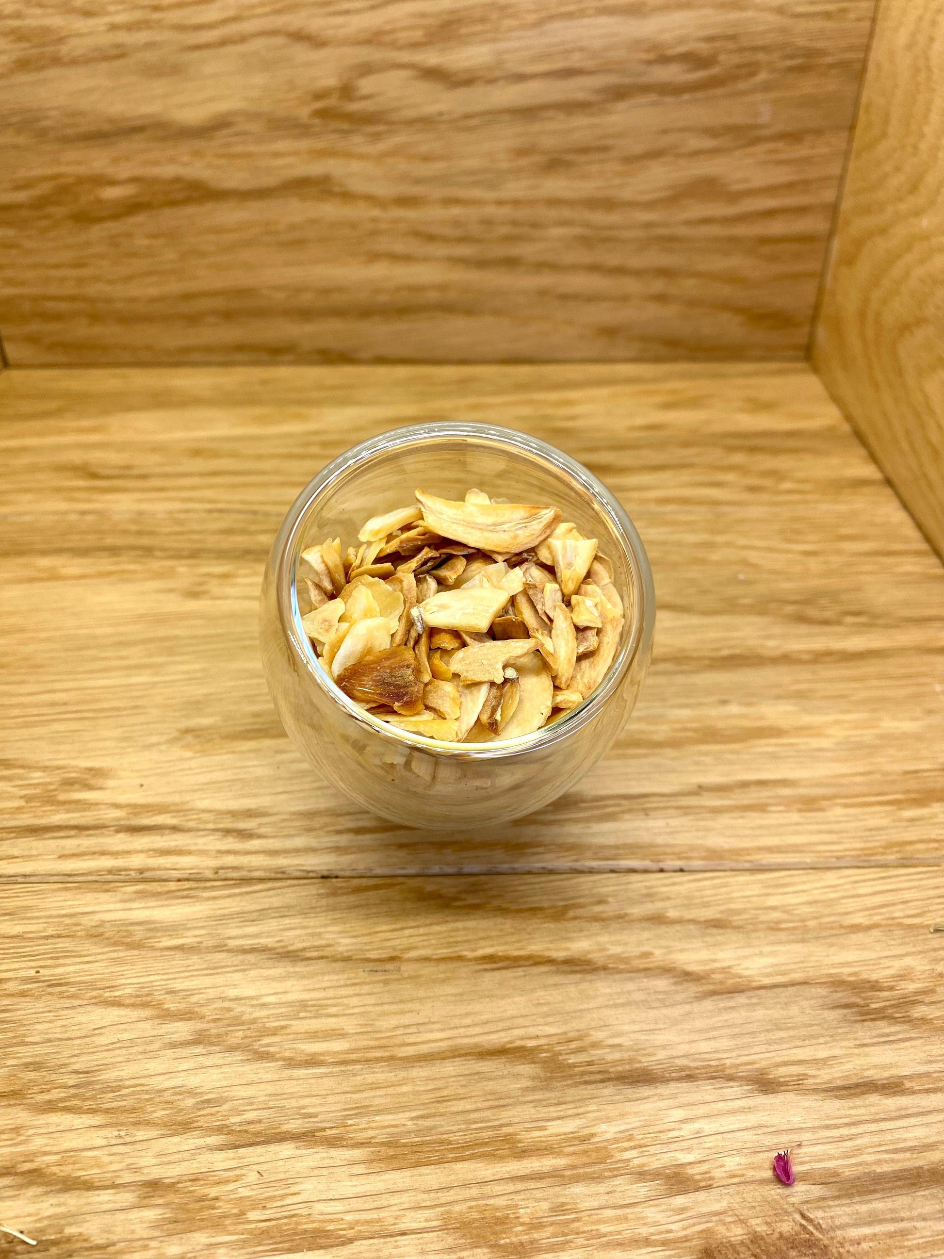 • En cuisine : Utilisez 1 à 2 cuillères à soupe de tranches d'ail séchées pour chaque portion de plat. Vous pouvez les ajouter directement dans vos recettes ou les réhydrater dans un peu d'eau chaude pour obtenir une saveur d'ail plus douce et intense.