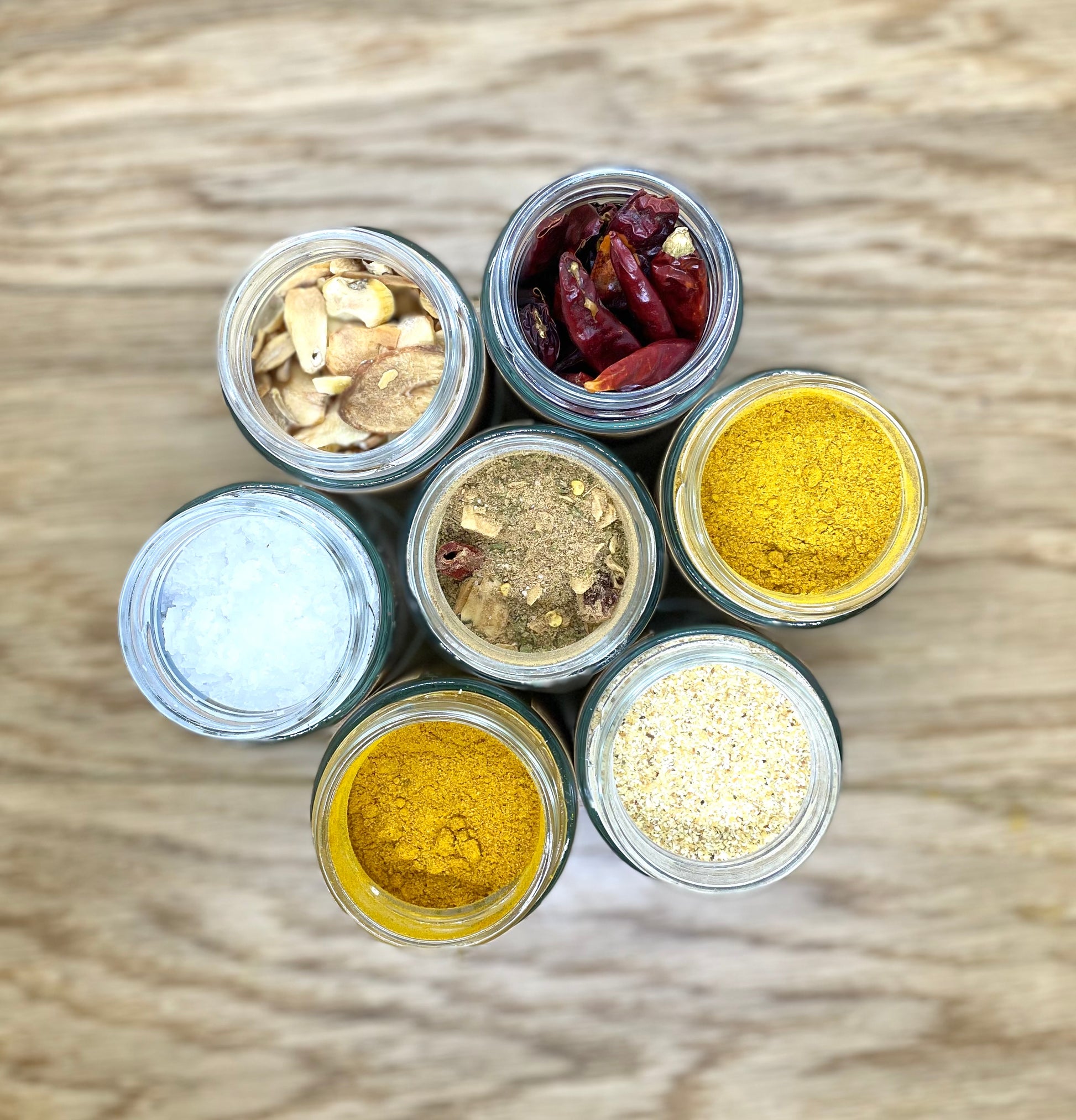 Ingrédients : curcuma, cumin, coriandre, gingembre, poivre noir, cannelle, ail